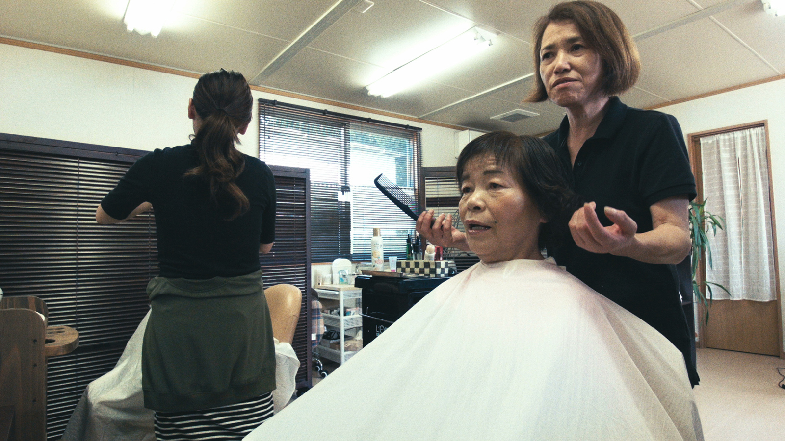 A hairdresser and her client discuss local ghost sightings | Images courtesy of La Société des Apaches & Baldanders Films.
