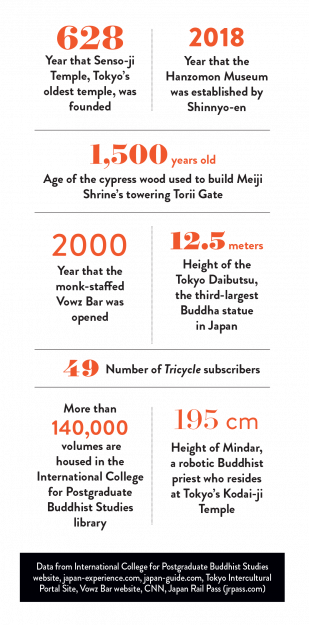 195 cm: Height of Mindar, a robotic Buddhist priest who resides at Tokyo’s Kodai-ji Temple